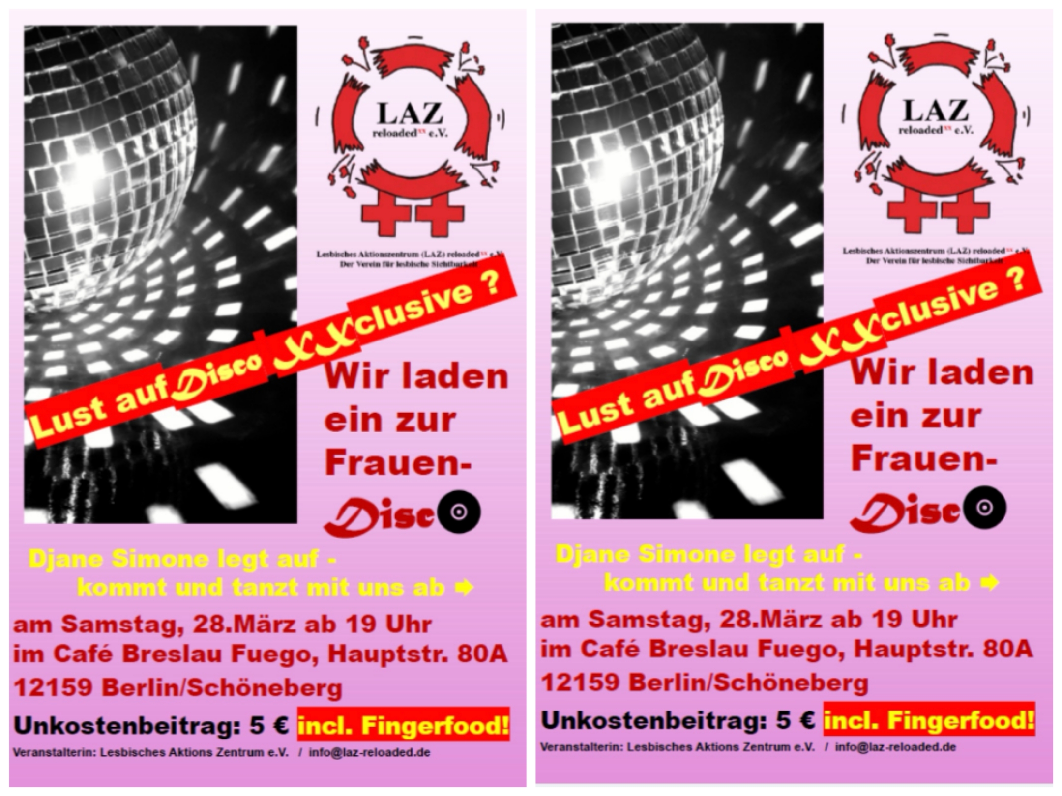 UNSERE ERSTE LESBENFRAUENDISCO „DISCO XXclusive“ FÜR UND VON JUNG & ÄLTER FINDET IN BERLIN SCHÖNEBERG STATT!